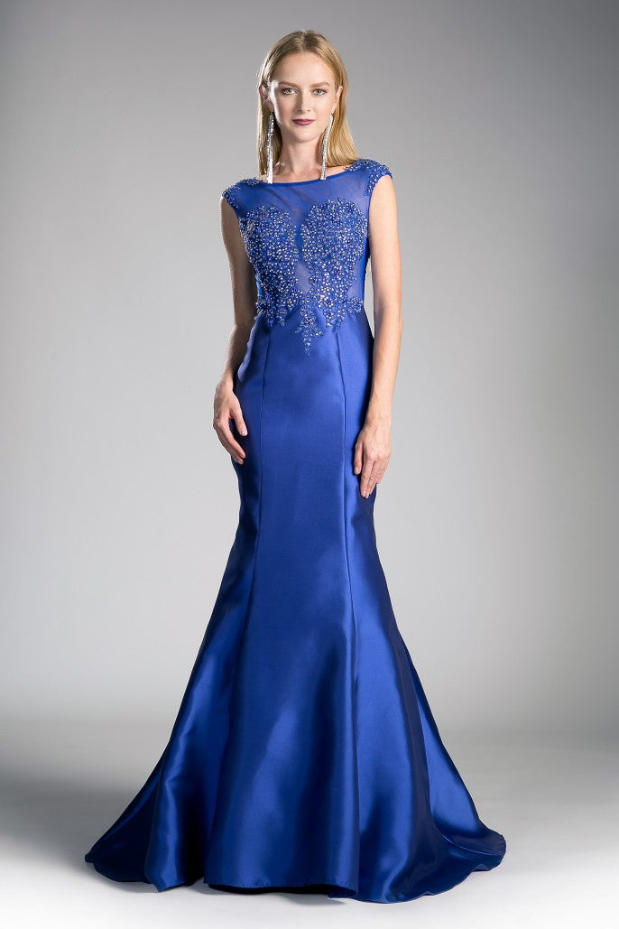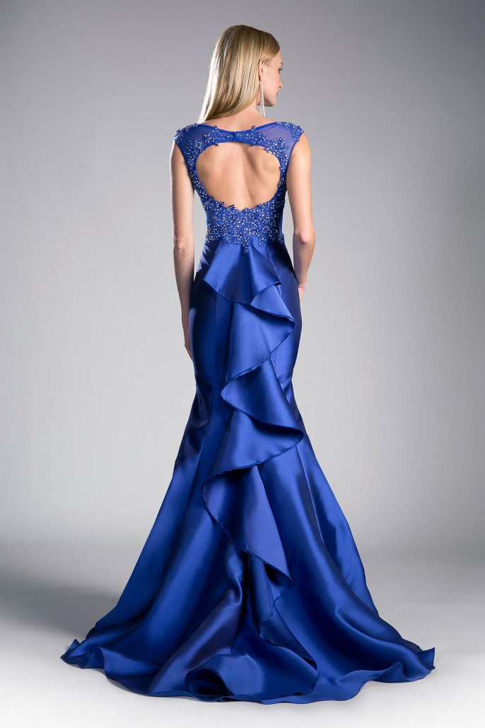 Vestido de Fiesta Azul Rey en Satén con Cauda