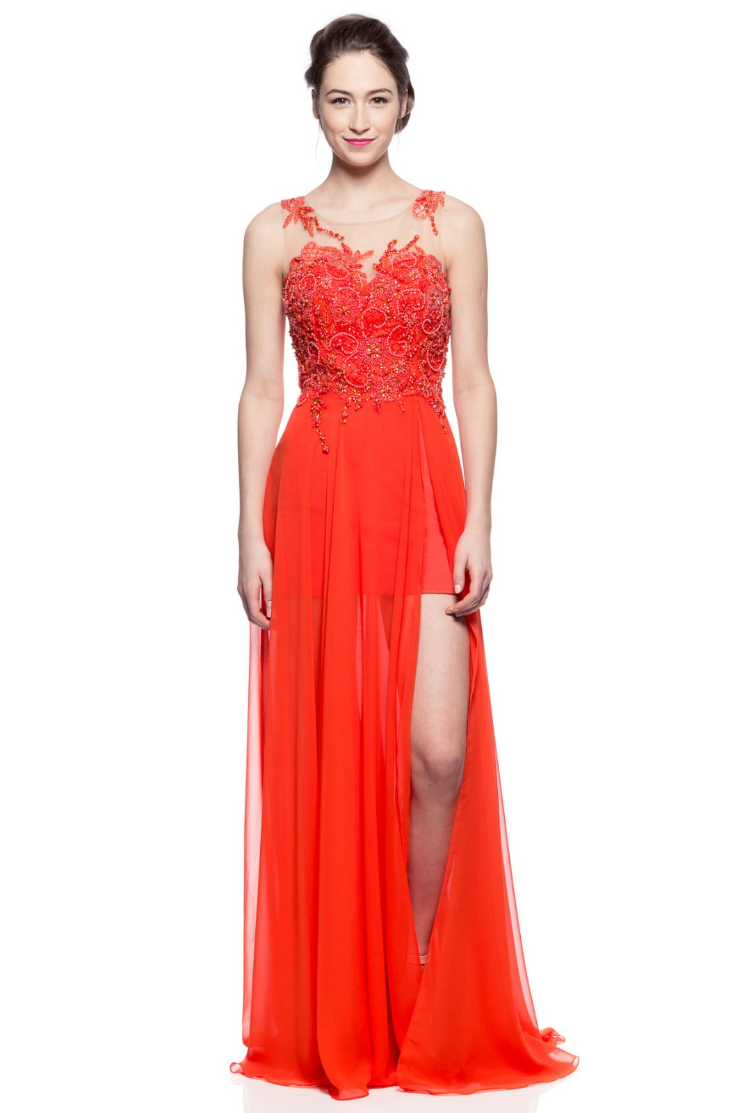 Vestido de Fiesta Naranja con Cuerpo Bordado