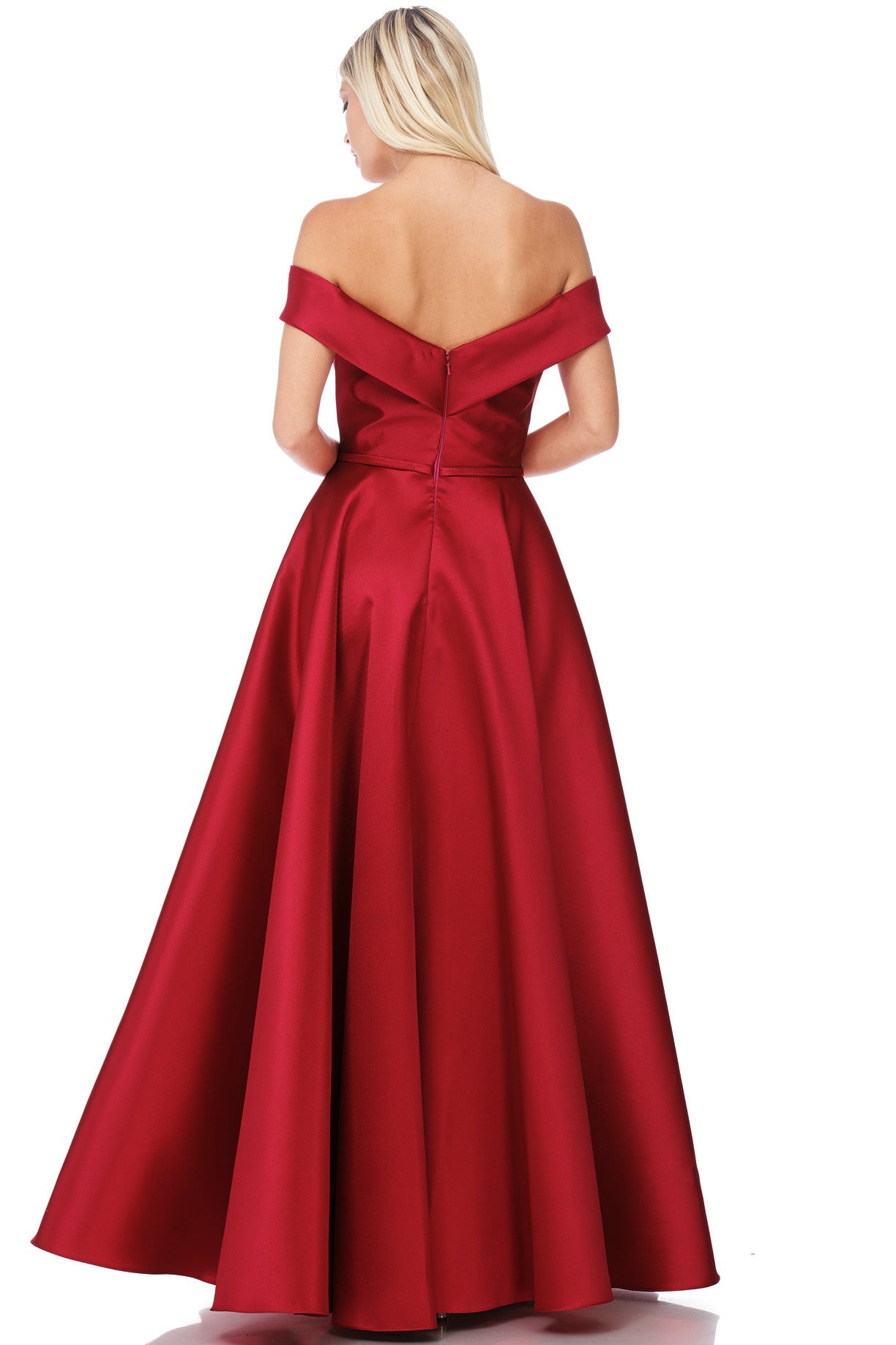 ✨ Vestido de Fiesta en Satén Burdeos con Escote Off-Shoulder ✨